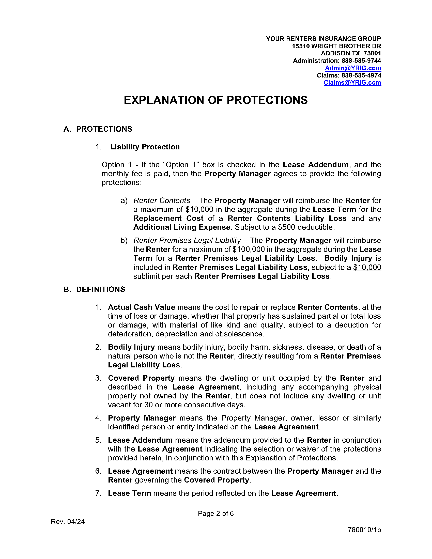 - Policy meets or exceeds the required $100,000 in property damage and legal liability.